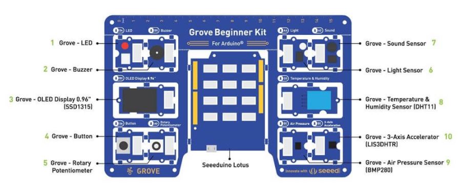 Note: This kit comes with the Seeeduino -Lotus, Arduino UNO compatible board.