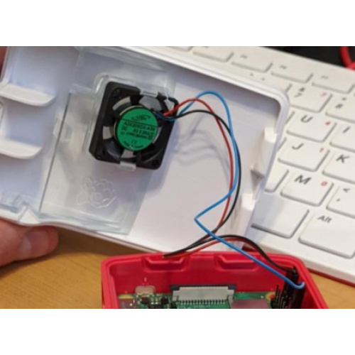 The Raspberry Pi 4 Case Fan works with Raspberry Pi 4 and the Raspberry Pi 4 Case. Designed for overclockers and other power users, it keeps your Raspberry Pi 4 at a comfortable operating temperature even under heavy load.