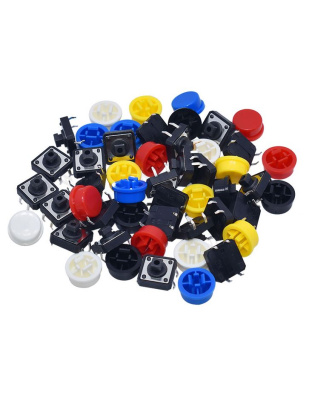 25pcs Tactile Momentary Push Buttons 12x12x7.3mm with Caps 5 colours