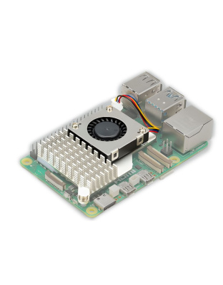 The Active Cooler provides an alternative cooling solution for users who wish to use their Raspberry Pi 5 under sustained heavy load without a case. It combines a large metal heatsink with a variable-speed blower