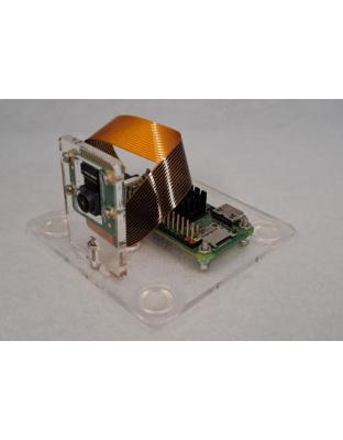 This camera stand is locally cut from clear acrylic for use with the official Raspberry Pi V2 and Module 3 cameras.