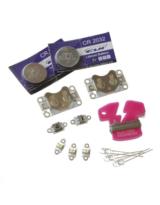 We have selected a number of products from our Electro-Fashion range, including three of our ultra-slim LEDs and two seperate power boards. There are enough components for you get started immediately to create some eye catching E-Textiles projects, the only limit is your imagination.